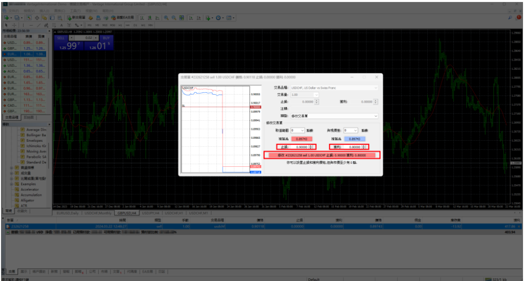 在 「止損價」 欄位中修改您的止損價位,在 「獲利價」 欄位中修改您的止盈價位,最後點擊 「修改」 按鈕以保存更改。