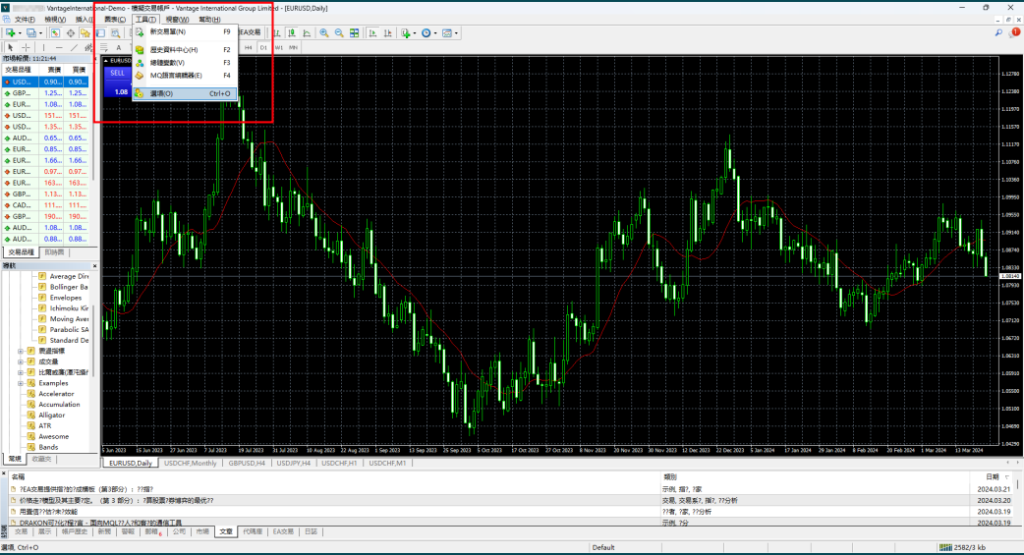 MetaTrader 4,簡稱 MT4,是全球金融市場中廣受歡迎的電子交易平台之一,尤其在外匯和差價合約 (CFD) 交易領域佔有主導地位。它以其強大的圖表功能、豐富的技術指標、以及支援自動化交易程式 (Expert Advisors, EAs) 而聞名。Vantage 作為一家全球領先的經紀商,全面支援 MT4 平台,為交易者提供穩定、高效的執行環境。