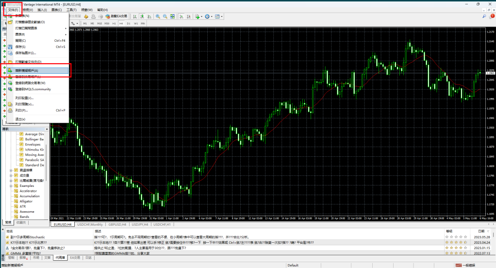 打開 MT4 平台,在左上角點擊 「檔」,然後選擇 「開設新模擬帳戶」。