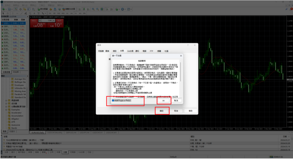 在確認合同條款的對話方塊中,勾選 「我接受這些合同條款」 的核取方塊,然後點擊 「OK」「確定」 按鈕以完成設置。