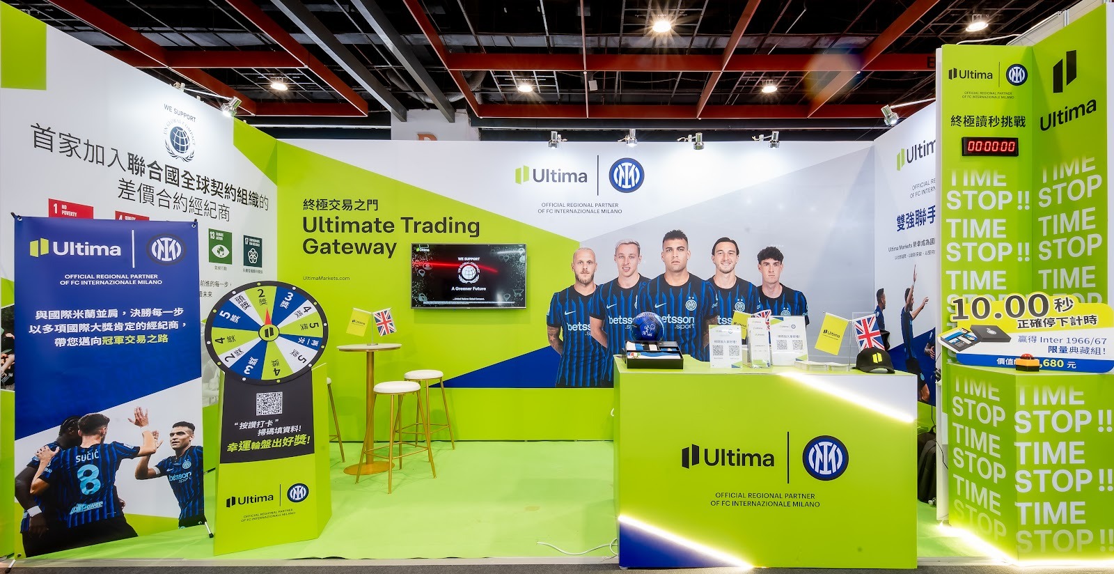 在展場中穿梭,你會發現很多金融機構的攤位都偏穩重、講究形象。但 Ultima Markets 的攤位?完全是另一種風格——未來感爆棚+互動滿點。